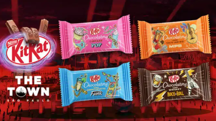 Marca global da Nestlé conhecida por combinar chocolate e wafer crocante, a Kitkat, que chegou ao Brasil em 2011, anunciou no mercado nacional o lançamento de quatro sabores alusivos à primeira edição do festival de música The Town.